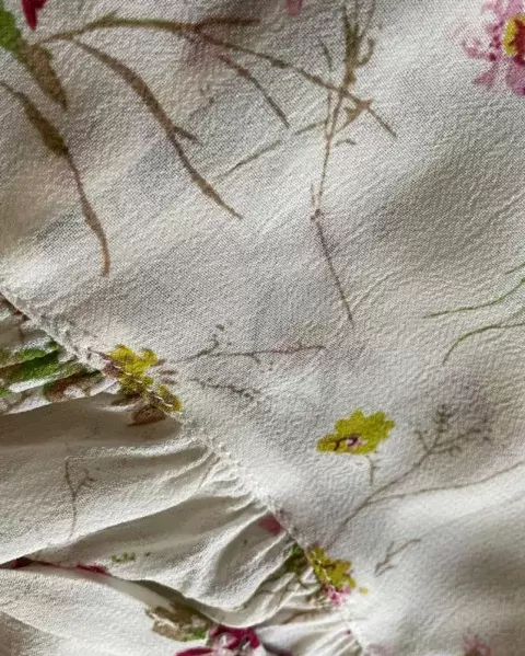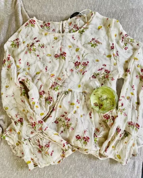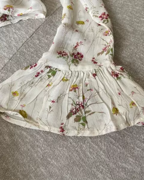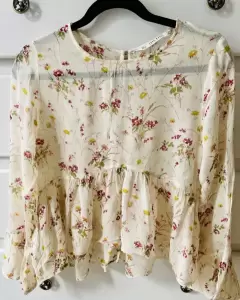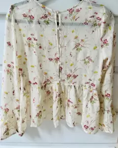 Blusa beige floreado manga larga, talla S, la tela no estira, tiene botones en la espalda 📏 axila a axila 45cm📏 alto 52cm