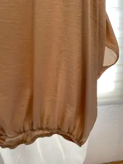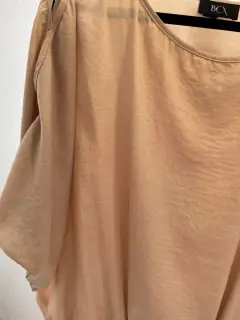 Blusa beige mujer. BCXBlusa MujerColor Beige Talla XLMaterial tela suave Cuello Ojal Manga vampiro Cintura resorte No cierre No botones Estado Usado buenas condiciones Precio 200