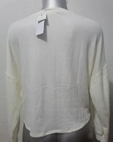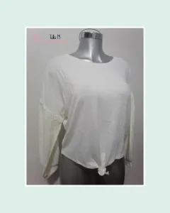 Hermosa blusita de tela estirable, super suavesita, tipo suetersito, mangas tipo globo, nudo en la parte inferior. Medidas largo 57cm, axila a axila 59cm