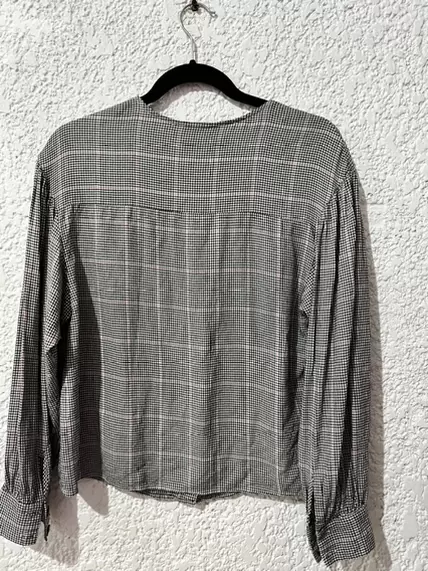 Blusa bershka puede usarse formal o casual es talla 28 tiene lindo estampado de cuadros pequeños ☺️