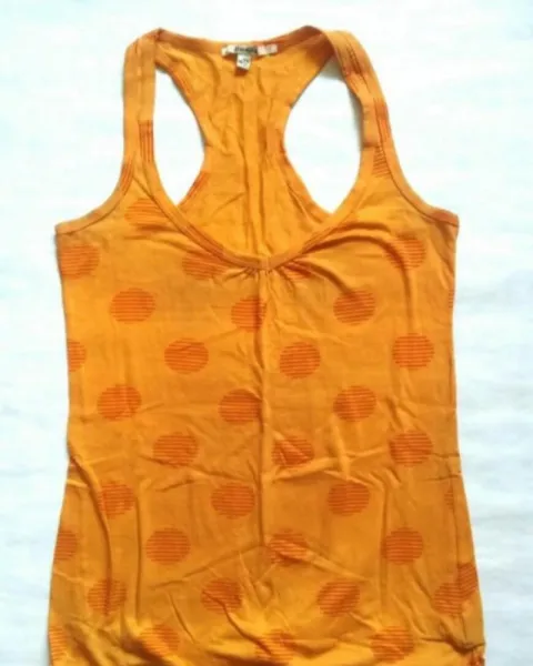 Blusa Bershka talla mediana, hombros descubiertos larga, estampado de bolitas.