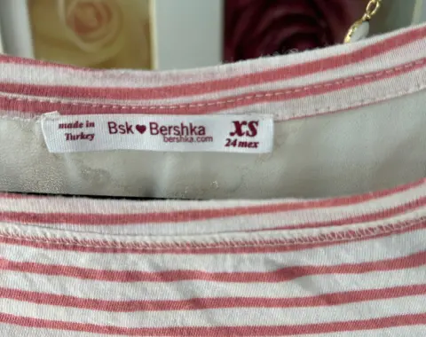 Blusa Bershka a rayas rosa y blanco. Hermosa blusa a rayas en color rosa y blanco, talla Ch, cuello redondo, no escotada, manga corta