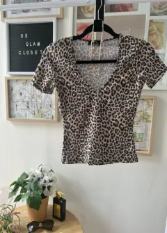 Blusa Bershka Anima print. Hermosa blusa con estampado en animal print, escotada en V, queda muy ajustada a talla S también queda a talla Xs, tela strech