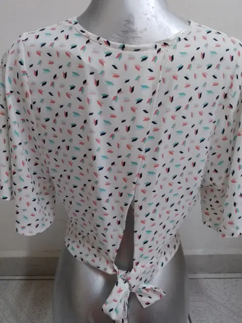 Linda blusa 👚 juvenil, talla chica, con cintas de amarre, blanca con decoración, de uso pero en condiciones para armar un lindo outfit