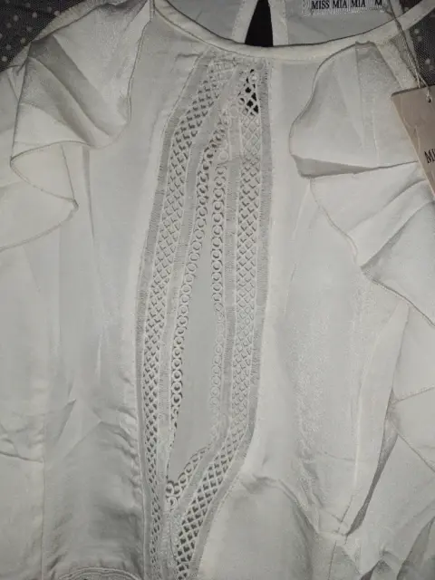Blusa blanca, lindísima,nueva, con transparencias en las mangas y abertura al frente
