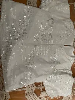Blusa blanca aterciopelada. Bella y dulce blusa aterciopelada con pequeñas lentejuelas que la vuelven brillante sin ser exagerada ni vulgar , todo lo contrario es dulce y elegante Nueva sin estrenar $260