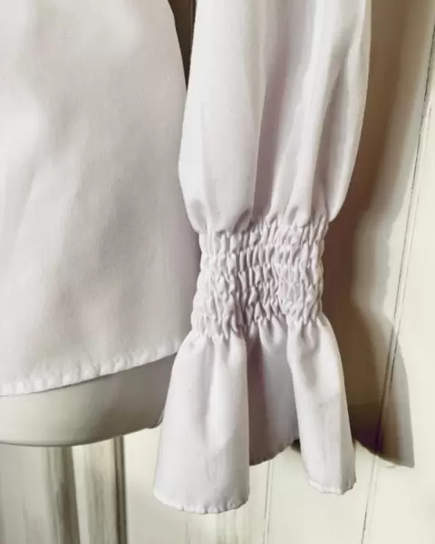 Blusa blanca con flores 💐. Blanca de manga larga con flores negras en terciopelo y lentejuelas. Trae resorte en las mangas para mejor ajuste.