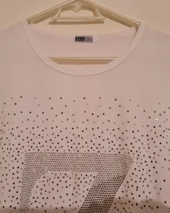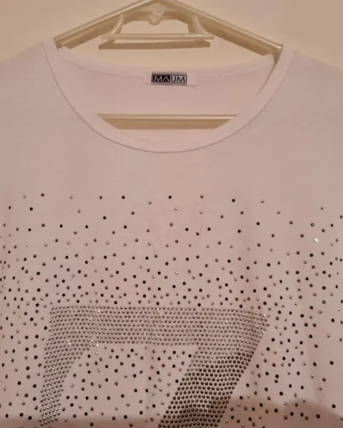 Blusa Blanca con pedreria!!Algodon strech!!. BLUSA MUY COMODA EN ALGODON STRECH CON ESTAMPADO DE PEDRERIA EN 3 TONOS!!! CORTE HOLGADO/ UNITALLA :30,32,34/ MIDE:62cm axila frente X 71cm/CASUAL/SPORT/COMBINALA EN DIFERENTES FORMAS!!