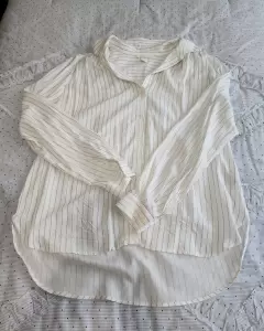 Blusa de vestir blanca con rayas negras, de manga largaIdeal parazllevar con pantalón negro, azul.oscuro de vestirSi se lleva casual combina muy bien con pantalon de mezclillaExcelente estaroTALLA S/M