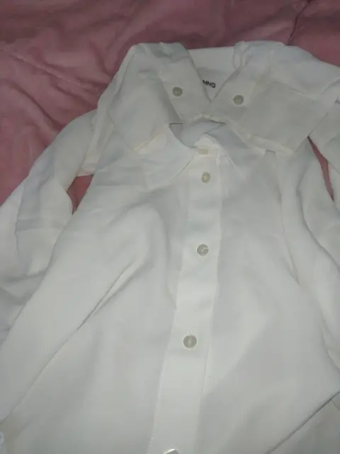 Blusa blanca con tabla en espalda. Blusa con botones completos y originales de compra tiene tabla en la espalda y una pequeñas. Manchas en hombro y espalda baja. Medida axila axila 50 cm.