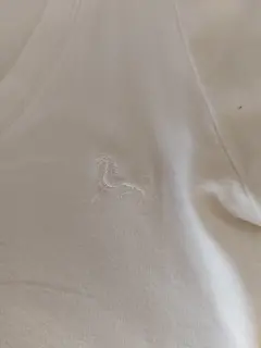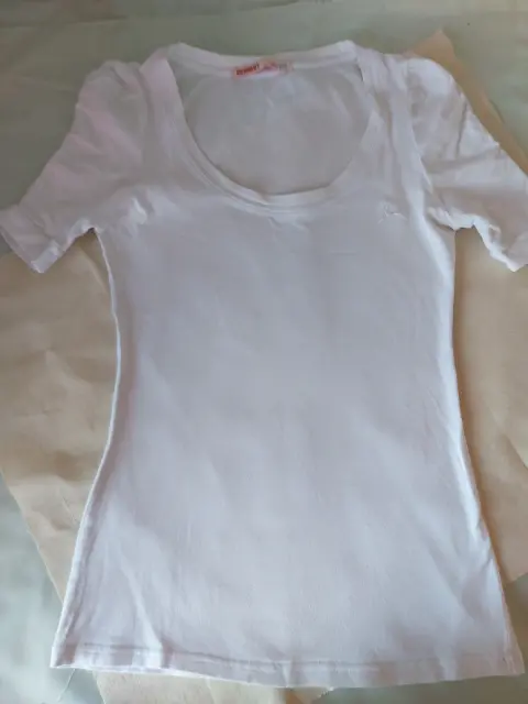 Blusa blanca manga corta. QUARRY, talla chica, cuello redondo, plisada de la parte superior de las mangas, tela algodón
