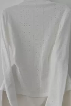 Blusa blanca manga larga. Preciosa blusa que aunque es de un modelo básico es única ya que cuenta con detalle de marcado con figuras lo que la hace diferente para realzar cualquiera de tus looks. Blanco crudo. Unitalla. Lavable en casa. Poliéster lo que permite que se conserve mejor el color.Medidas:Hombro 39 cmBusto 45 cmLargo 54 cm