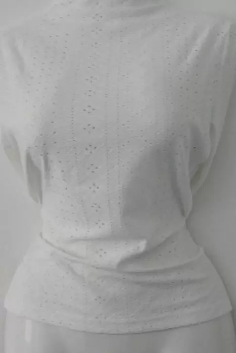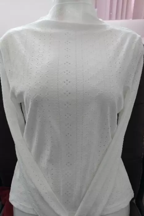 Preciosa blusa que aunque es de un modelo básico es única ya que cuenta con detalle de marcado con figuras lo que la hace diferente para realzar cualquiera de tus looks. Blanco crudo. Unitalla. Lavable en casa. Poliéster lo que permite que se conserve mejor el color.Medidas:Hombro 39 cmBusto 45 cmLargo 54 cm