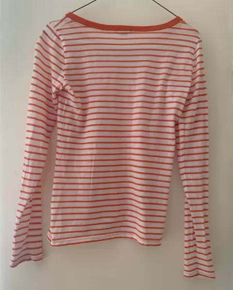 Blusa Blanca Rayas Naranjas manga larga. blusa blanca manga larga con rayas naranjas