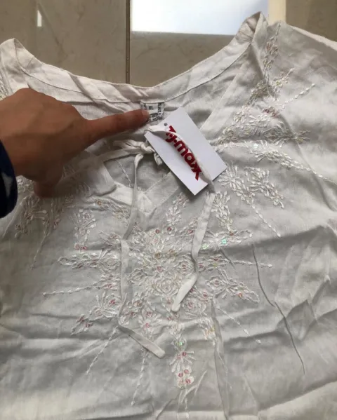 Blusa blanca TJ MAX. Blusa blanca de dama, tiene lentejuelas bordadas enfrente y un liston de la misma tela de la blusa, es talla XL, nueva y con etiqueta, tiene lentejuela en varias partes de la blusa