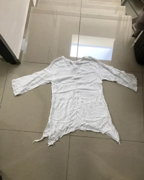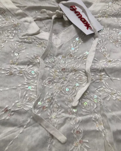 Blusa blanca de dama, tiene lentejuelas bordadas enfrente y un liston de la misma tela de la blusa, es talla XL, nueva y con etiqueta, tiene lentejuela en varias partes de la blusa