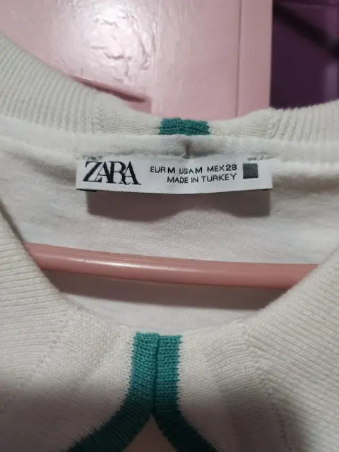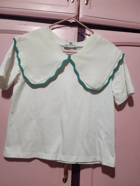 Blusa blanca Zara. Blusa blanca manga corta con cuello sobrepuesto, marca Zara, es de camiseta