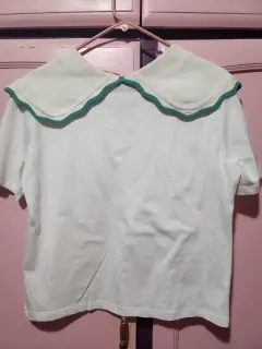 Blusa blanca manga corta con cuello sobrepuesto, marca Zara, es de camiseta