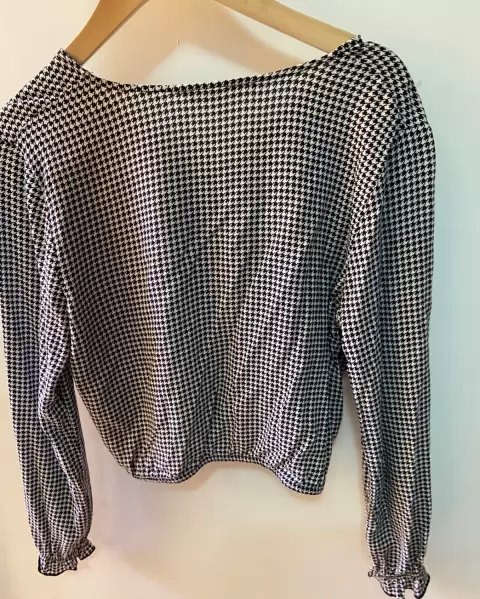 Blusa blanco con negro, con estampado tipo cuadros, tela de algodón, formal y muy cómoda por la suavidad de la tela.