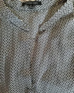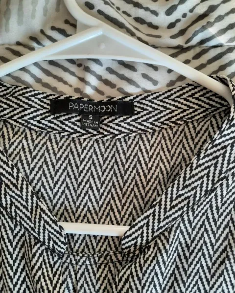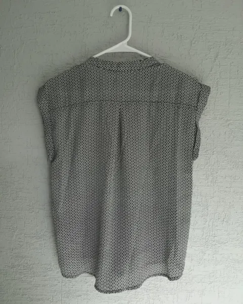 Blusa con patrón blanco y negro talla M, se amarra de la parte delanteras con un nudo o moño, se utilizo una vez pero me quedo grande, esta nueva y es muy comoda