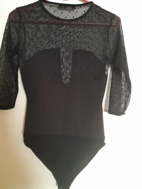 Blusa body negra. Es transparente de las mangas con bonitas negras.