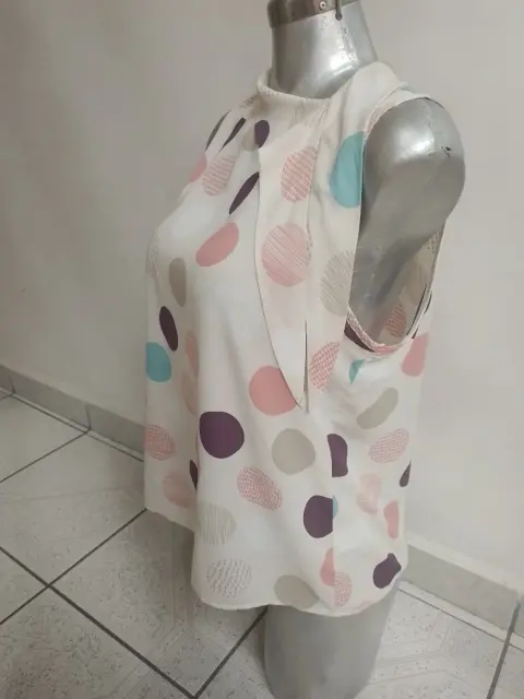 Blusa bolitas. Linda blusa 👚 juvenil, color beige con bolas de colores, manga escotada, talla mediana, una sola puesta sin detalles para armar un lindo outfit...