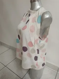 Linda blusa 👚 juvenil, color beige con bolas de colores, manga escotada, talla mediana, una sola puesta sin detalles para armar un lindo outfit...