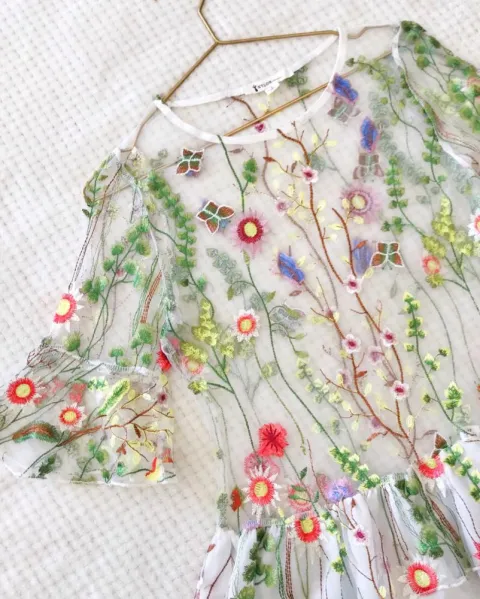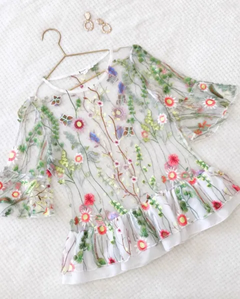 Blusa con bordados de flores, la tela transparenta. Esta talla chica pero tambien le queda a talla mediana