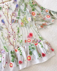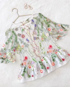 Blusa bordad con flores. Blusa con bordados de flores, la tela transparenta. Esta talla chica pero tambien le queda a talla mediana