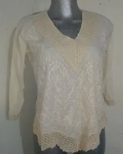 Blusa bordada. Camisa manga larga cuello v, bordada tela algodón talla mediana marca royal moda