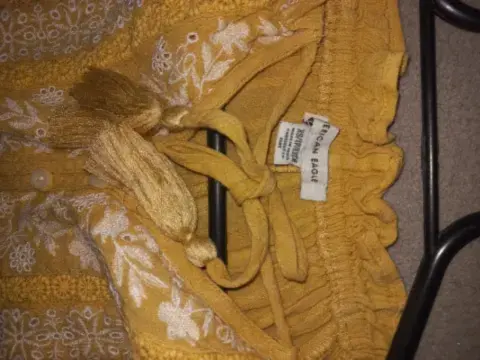 Blusa bordada american eagle ,corta ,dice xs pero si da a chica tal vez mediana ,made in India 60% cotton ,40% viscose medidas 53 cm de axila a axila y 41 cm de largo