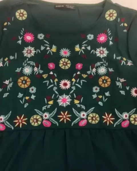 Blusa bordada flores muy linda.. Hola chicas, tengo a la venta esta linda blusa marca shein en color verde y bordados multicolor.Es talla xsSiendo que la pedi para mi pero la mandaron en otra talla que no me queda.Ánimate esta muy linda y nueva.