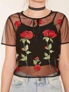 Blusa bordada transparente. Blusas negra bordada transparente talla chica mediana. Se uso un par de horas. Prácticamente nuevo. Muy bonita y combinable