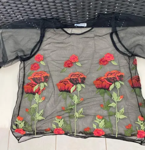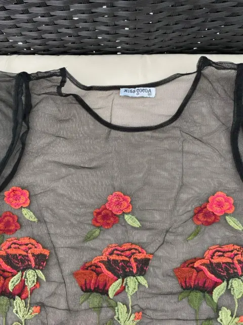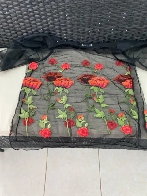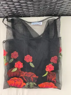 Blusas negra bordada transparente talla chica mediana. Se uso un par de horas. Prácticamente nuevo. Muy bonita y combinable