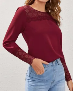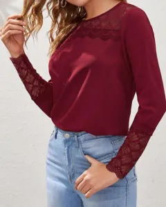 Blusa Burdeos con encaje Shein