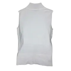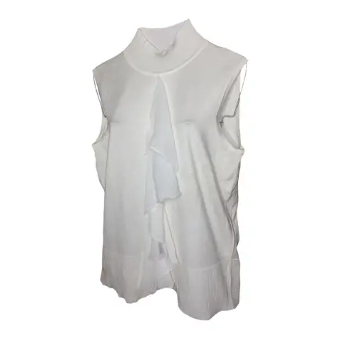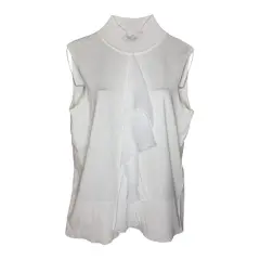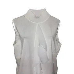 Blusa Cable & Gauge Blusa blanca de oficina. 74% rayon, 26% poliéster Lavar a máquina Tela de chifon: suave, cómoda y agradable al tacto Sin mangas, por lo que es perfecto para el sol, parte delantera con volantes, color sólido, Cuello jabot, blusa victoriana clásico, ajuste regular, blusa de otoño, blusa de trabajo de oficina