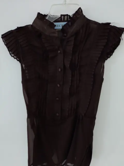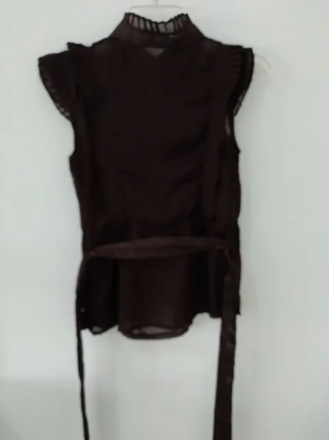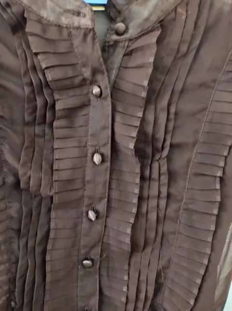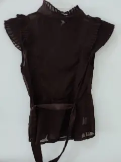 Linda blusa cafe con tablones al frente, botones forrados y cinta en la cintura, esta en perfectas condiciones.