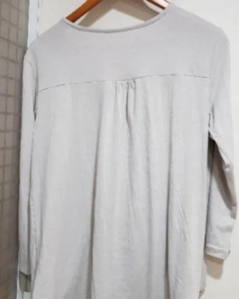 Muy cómoda y suave, aunque es M está muy amplia, considero queda a L, color gris pálido, básico que combina con todo. Envío rápido.Medidas:Hombros 43 cmAxilas 56 cm Largo por enfrente 60 cm Largo por detrás 70 cm