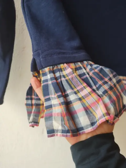Hermosa blusa calientita manga larga con olan en la parte de abajo azul marinoNueva sin etiqueta 🏷️Está marcada con la talla 12-14 de niña pero queda a xsMide 35 cm hombro44 de axila60 cm largo56 cm de largo de manga