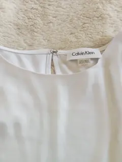 Blusa Calvin Klein. Blusa blanca talla S, marca Calvin Klein. Sin manga, solo con olanes. Cuello redondo y con cierre tipo oval en la parte de la espalda.