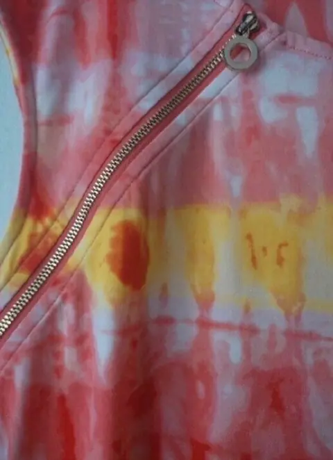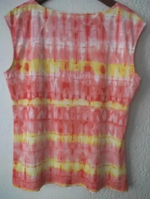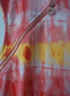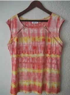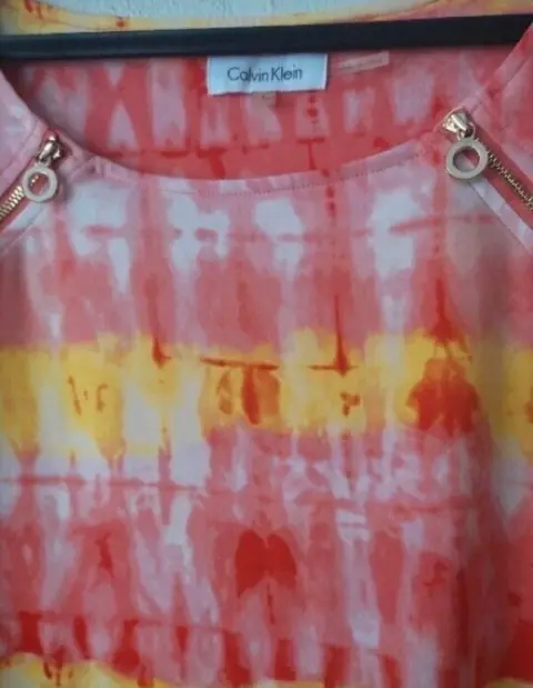 Preciosa blusa Calvin Klein en colores muy alegres, fresca, detalles de zipper dorado a los lados con placa metálica con la marca. Una sola puesta, tela de licra. Medidas de axila a axila 55cm y 62 de largo.