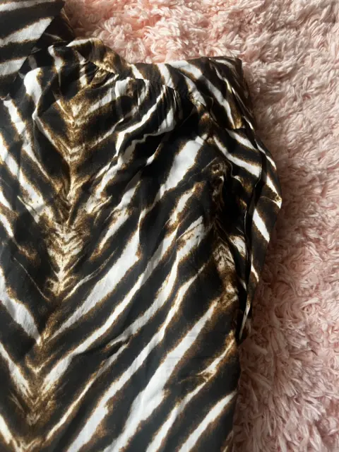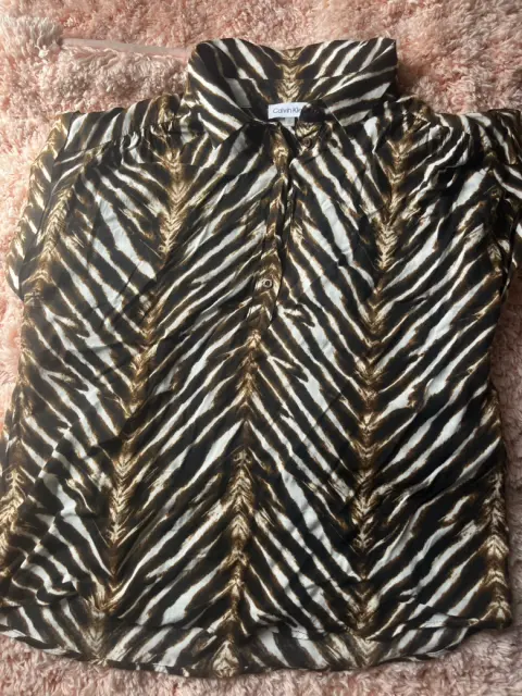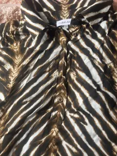 Blusa Calvin Klein. Es manga corta , talla chica , la tela tiene strech de axila a axila mide 45 de de largo 55 cm más lo que estira , el estampado es tipo animal print zebra en color café , tal cual las fotos