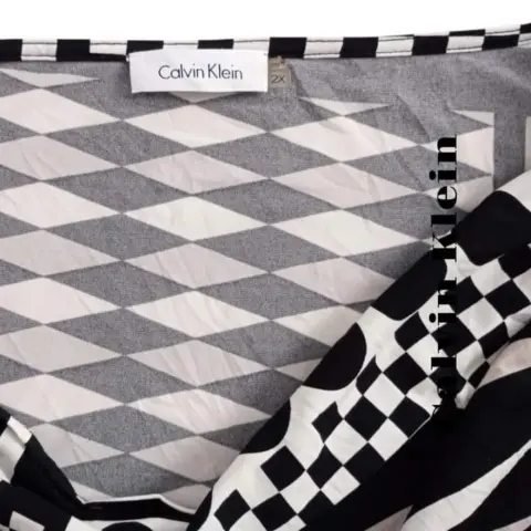 Blusa Calvin Klein. Blusa Calvin Klein t 2X estampado geométrico. Cuello hamaca 42cm hombros 66cm axilas 61cm largo. Material 95% poliéster 5% Spandex