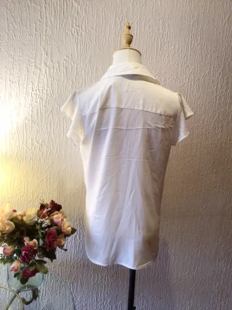BLUSA TALLA XS QUEDA A S CON OLANES FRONTALES MANGA CORTA, CON SEMI OLÁN, BOTÓN EXTRA HERMOSA TELA, BOTONES LINDOS MARCA CALVIN KLEIN COLOR BLANCO