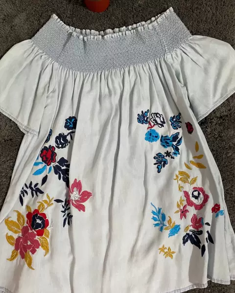 Blusa campesina. Blusa campesina bordada, tela suave tipo mezclilla, ligera y muy cómoda