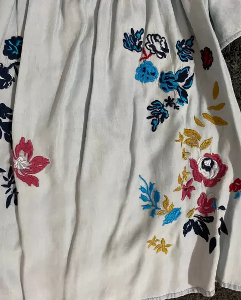 Blusa campesina bordada, tela suave tipo mezclilla, ligera y muy cómoda