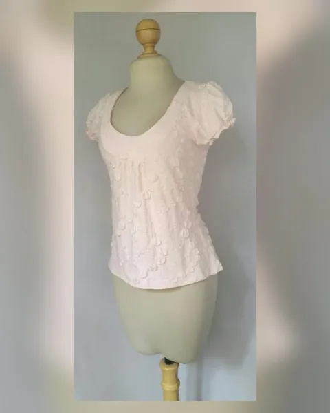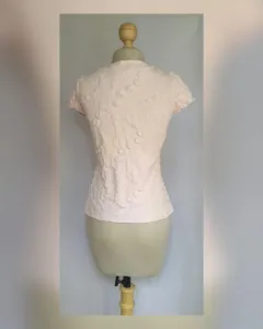 Blusa casual básica color ROSA BEBÉ, corte evasé, cuello joya, manga corta abullonada c/elástico. Talla G. Dimensiones: 35.5 cms hombro a hombro, 44 cms axila a axila, 41 cms cintura, 52.5 cms zona baja, 56.5 cms largo, 13.5 largo manga. 90% nylon, 10% licra. Para lavado en casa. SIN DETALLES, se uso solo una vez. SE ENTREGA PERFECTAMENTE LAVADA Y DEODORIZADA.
