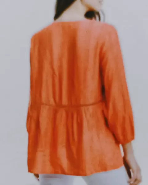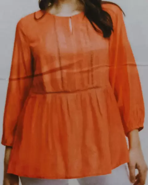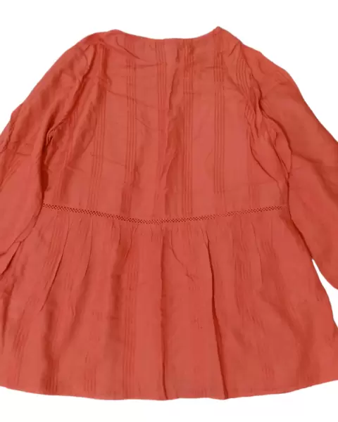 Hermosa Blusa Casual en color Coral manga 3/4 cuello redondo pero tiene un porche para hacerlo más descontado, súper fresca y la puedes combinar con lo que quieras sus medidas son Pecho 48 cm Manga 48 cm Largo 66 Cm