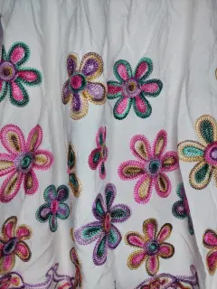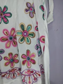 Blusa casual con flores bordadas. Blusa de tela suave y delgada 90 % algodón, las flores son bordadas a maquina, manga corta con cordones para ajustar al brazo.