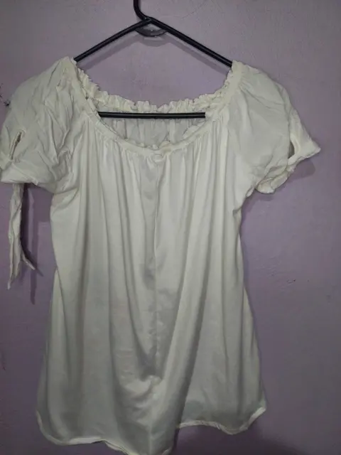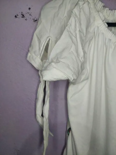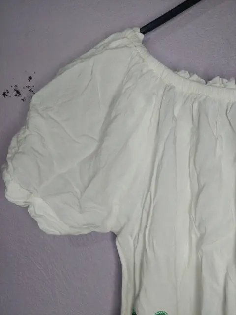 Blusa de tela suave y delgada 90 % algodón, las flores son bordadas a maquina, manga corta con cordones para ajustar al brazo.